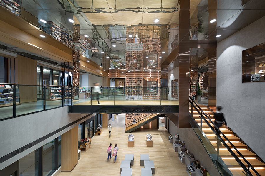 在建筑現(xiàn)象學(xué)中場(chǎng)所和場(chǎng)所精神是核心概念和中心議題,人的基本需求在于體驗(yàn)其生活情境是富有意義的,藝術(shù)作品的目的則在于”保存”并傳達(dá)意義。建筑沒(méi)有什么不同的”種類(lèi)”,只有不同的情境需要不同的解決方式,藉以滿(mǎn)足人生在實(shí)質(zhì)上和精神上的需求。帶著對(duì)城市與人文、藝術(shù)與文化、空間與情感等相關(guān)聯(lián)系的思考,J&A試圖在書(shū)城中創(chuàng)造一種全新的觀(guān)念——“不止是書(shū)店,更是一個(gè)閱享生活的場(chǎng)所”。
