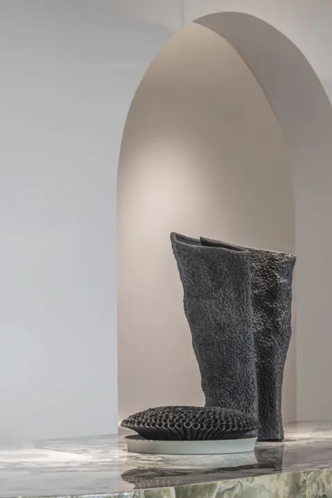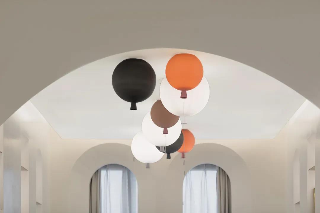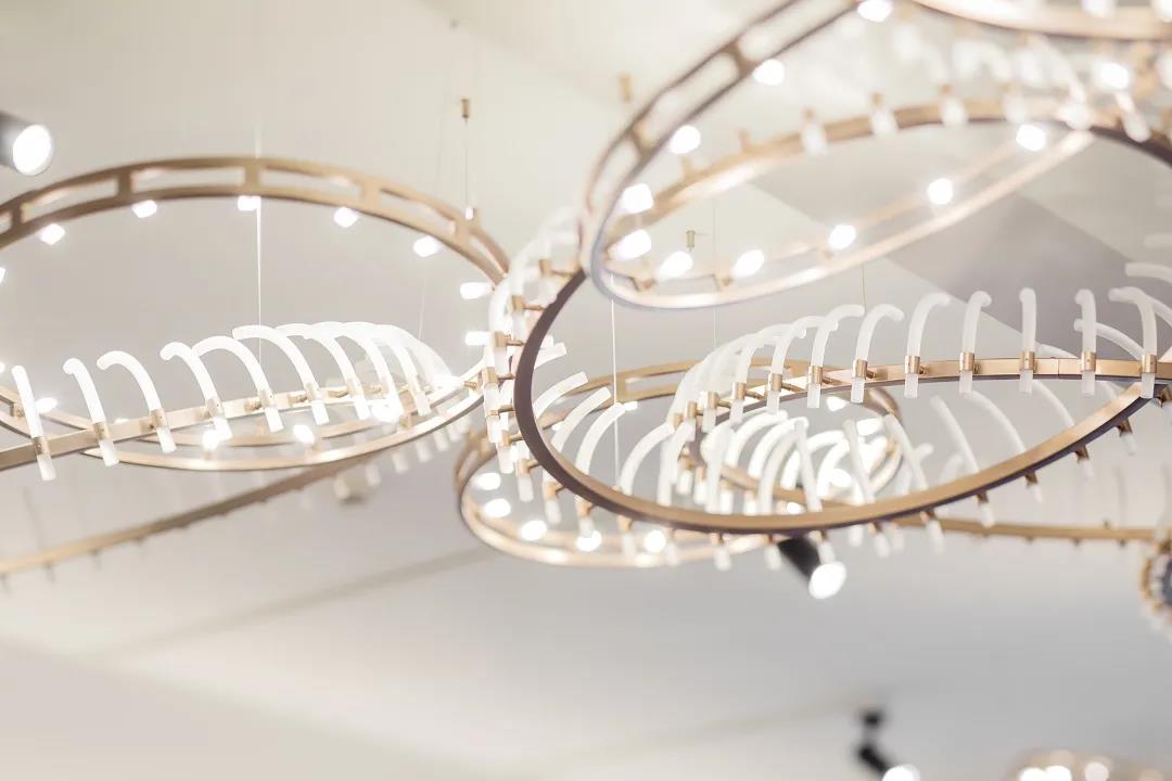 設計不僅是功能的展現,同時也具有科學性和藝術美學,自然而然地滲透進每一位觀者的思維之中。莫比烏斯環現象寓意循環與反復,設計師將它的概念重置,將藝術吊燈的層疊環繞,眾多完整成圈的線條,組合成抽象精神的具象之形,達到了形式與結構,形式與功能的合理關系,形成了在空間上永動連續的空間形式。