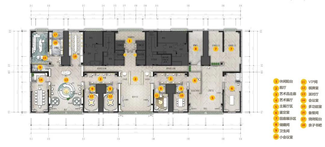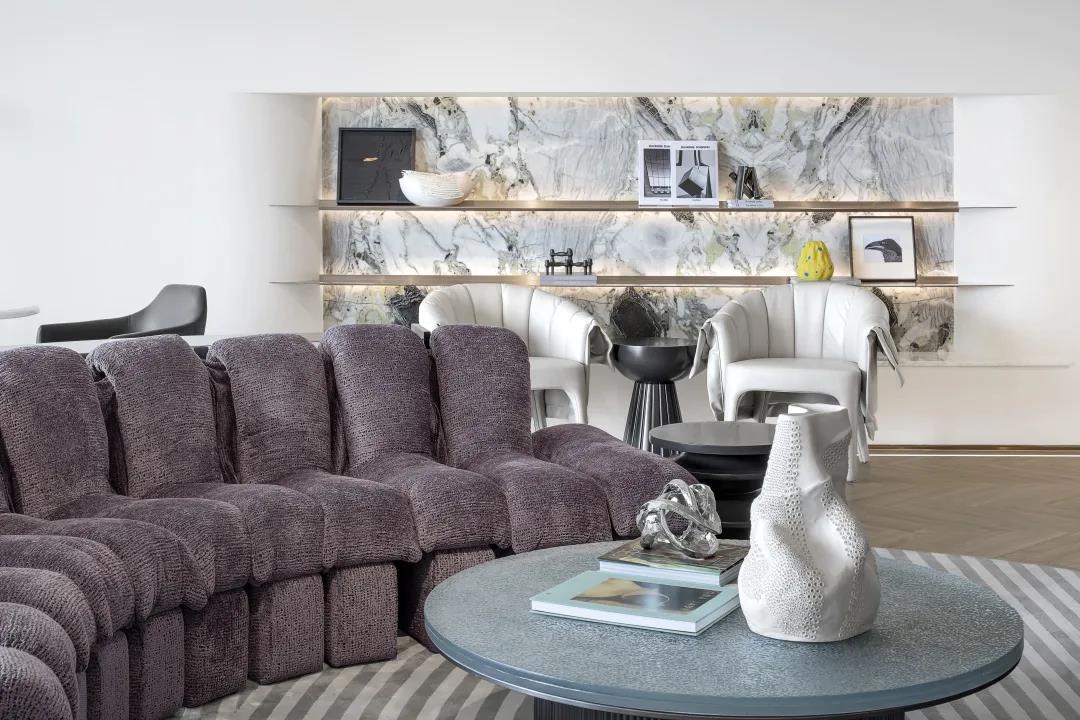 主要材料:肌理漆、白紋板石材、木飾面、古銅金屬