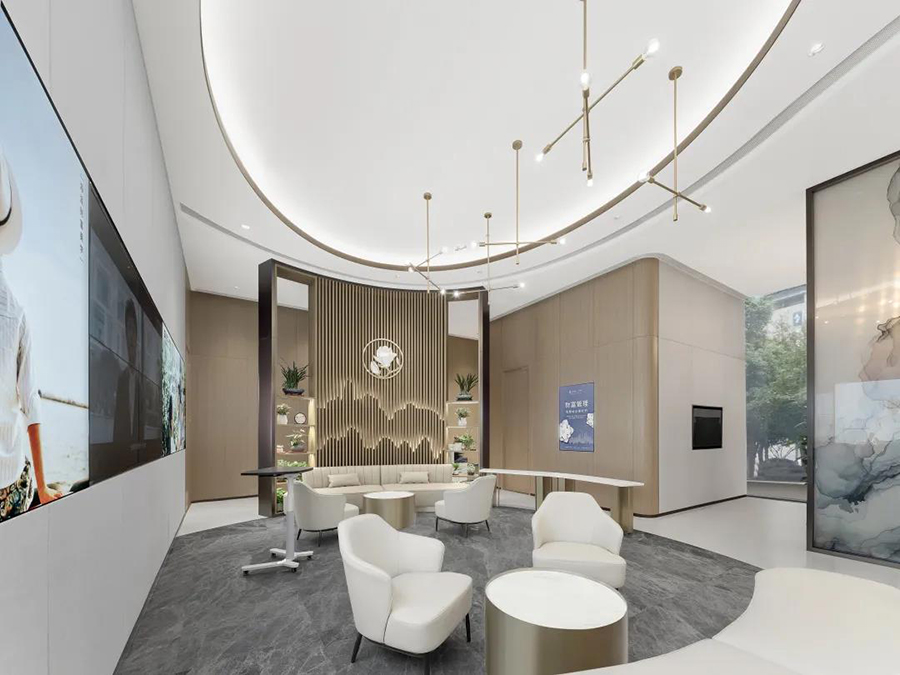 智能服務(wù)區(qū)的設(shè)置,線性燈以及LED屏、透明玻璃屏的靈活運(yùn)用,充分體現(xiàn)了科技、靈動(dòng)的氛圍,而借用光影效果和線條變化,讓營業(yè)廳的空間頗具活力和趣味,既體現(xiàn)出蘇州當(dāng)?shù)氐娜宋木坝^,又具有現(xiàn)代科技感。