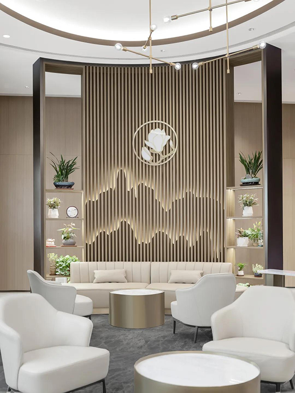 除了開放的公共服務(wù)區(qū)和私密的會(huì)議室,營業(yè)廳內(nèi)還設(shè)置了集休閑、淺談以及沙龍于一體的財(cái)富中心洽談區(qū),整個(gè)空間延續(xù)了營業(yè)廳的曲線造型,溫馨的木飾面、荷塘墨色的地毯,營造出舒適尊貴的氛圍。既可洽談業(yè)務(wù),也可以舉行小型的沙龍講座。