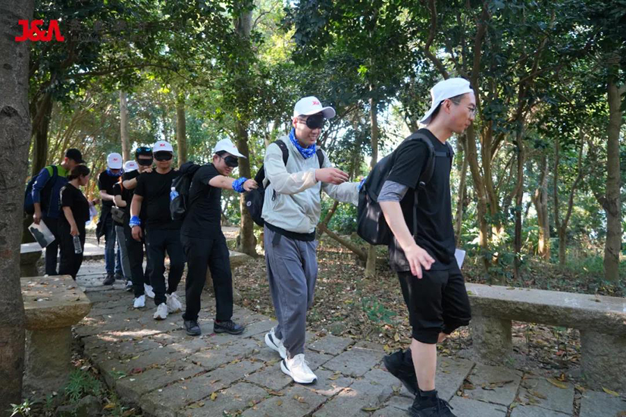 盲行途中,合伙人們充分給予同伴信任,相互支持,勇敢地向著目標攀登,彼此的默契度與交流得到了進一步的促進與升溫。