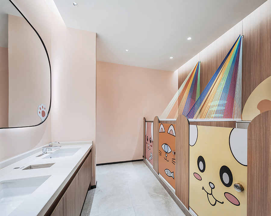 在保證原有動線不變的情況下,為豐富空間層次,J&A通過不同的色彩組合,增添階梯的節奏感,營造一個漫步式的社交購物空間。