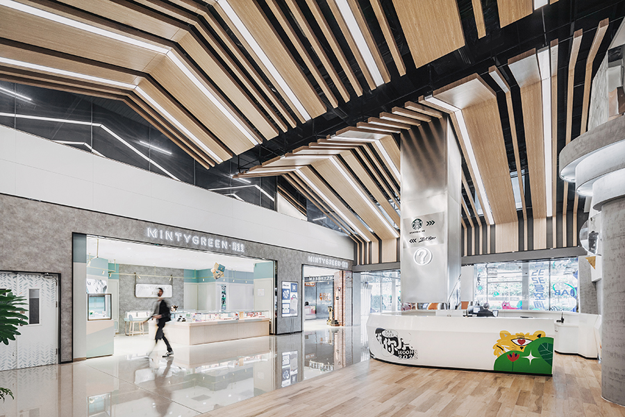 富有活力而連貫的購物流線將不同形式風格的場景串聯,為各種活動提供了可能性,人在空間中穿梭,曲曲折折,與藝術裝置互動,體驗不同場景,在繁忙的工作生活之余,自在享受另一種生活方式。