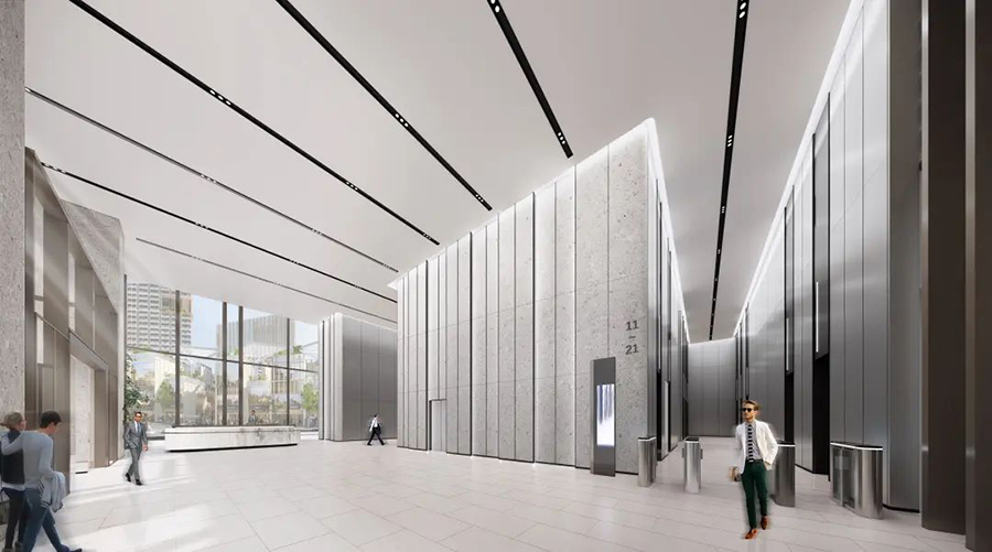 基于項目規劃與建筑形態,J&A在設計思考中,注重人、建筑、自然生態環境與空間之間的良性循環,依托SID實驗室和“哈工大(深圳)—杰恩”數字設計與智能建造聯合實驗室的研究成果,以低碳活力軸重建城市山水聯系,采用模數化設計,合理優化平面動線,深度考慮后疫情時代室內公共區及公共設施抗菌防疫的設計,選取環保低碳材料,讓低碳理念在空間中“可視化”,呈現一個低碳綠色、生活友好、分享互動、多元復合的空間環境。