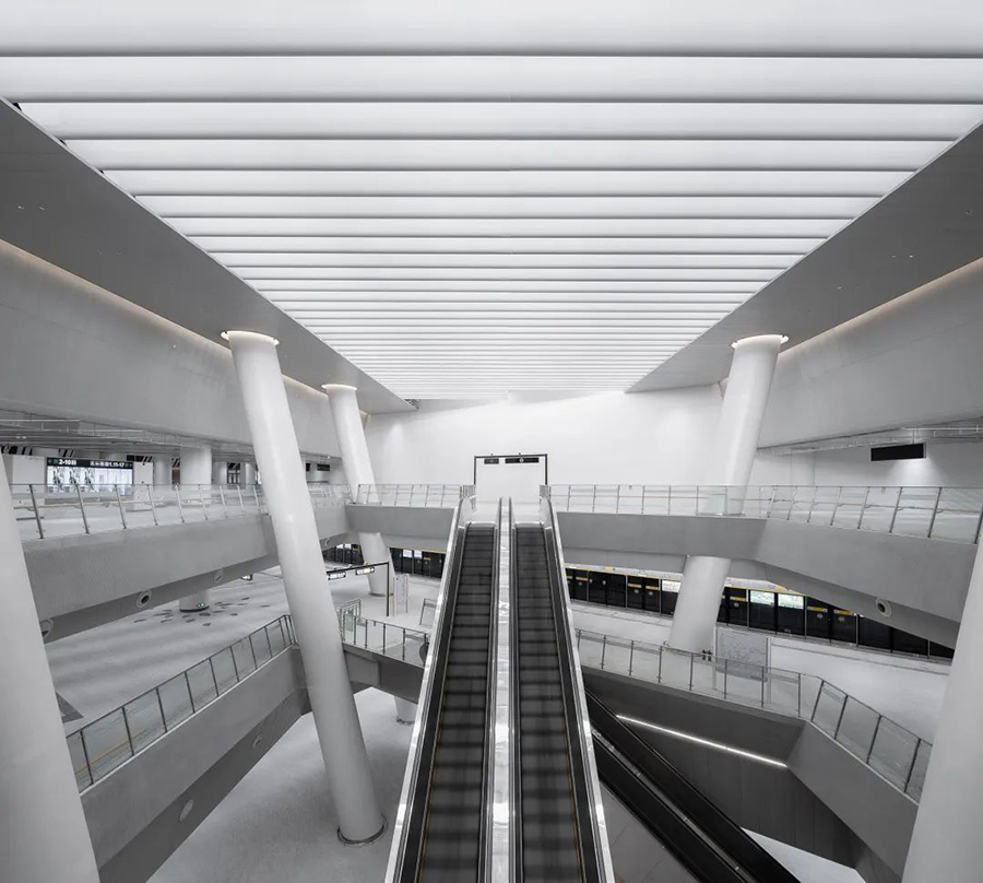 遵循深圳市城市軌道交通四期線網總體策劃的核心定位,J&A杰恩設計在項目的室內設計中,引入“陽光+生長”理念,融合當代藝術文化,營造自然、舒適的地下空間,助力深圳軌道交通的建設和可持續發展。