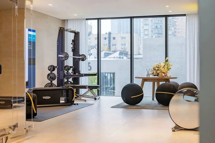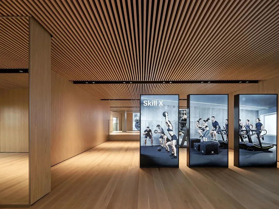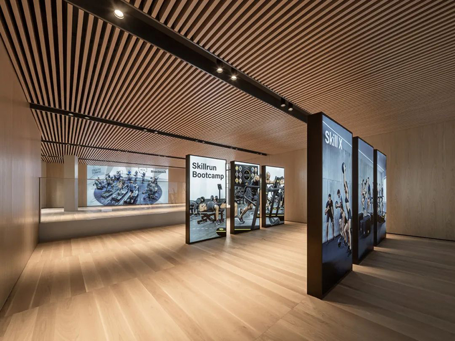 空間設計如何為用戶提供舒適的運動環境,帶來愉快的健康體驗?以簡約設計為主,泰諾健展廳的設計試圖通過材質本身來呈現空間的質感。
