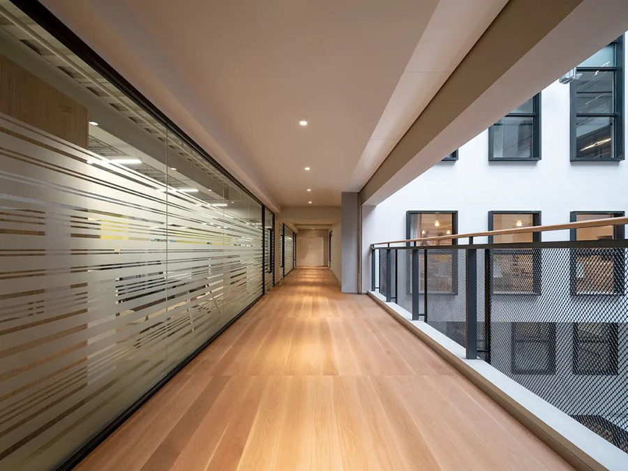 面對復雜的地面高差,施工團隊通過對每塊玻璃進行專業定制,實現空間隔斷與地面的貼合。遵循泰諾健“全面健康”為宗旨,設計團隊將整個空間進行梳理優化,最大程度保障項目的落地還原度,令其煥發新生,提升空間的品質感,為其拓展中國市場提供匹配品牌定位的展示與工作場所。