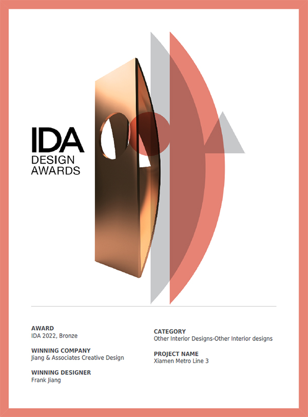 近日,2022美國國際設計大獎(International Design Awards ,簡稱IDA)公布了全球獲獎榜單,經過與全球80多個國家眾多優秀參賽作品進行角逐,J&A杰恩設計憑出色實力累計斬獲8項大獎。廈門地鐵3號線獲得銅獎,佛山A32萬科里LAB、華僑城集團總部、深圳地鐵8號線、青島萬麗酒店、深圳官龍學校、成都中鐵逸都營銷中心等獲得榮譽獎。
