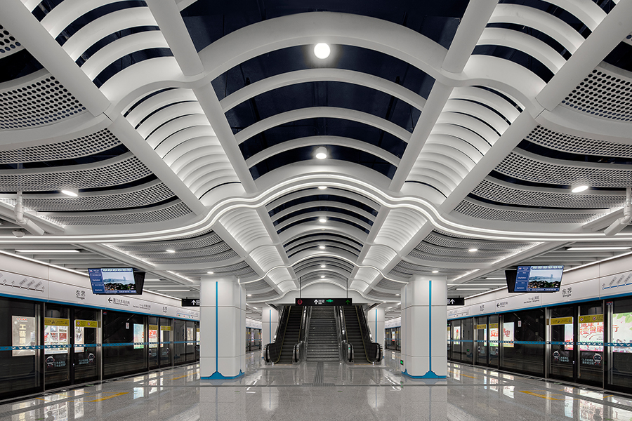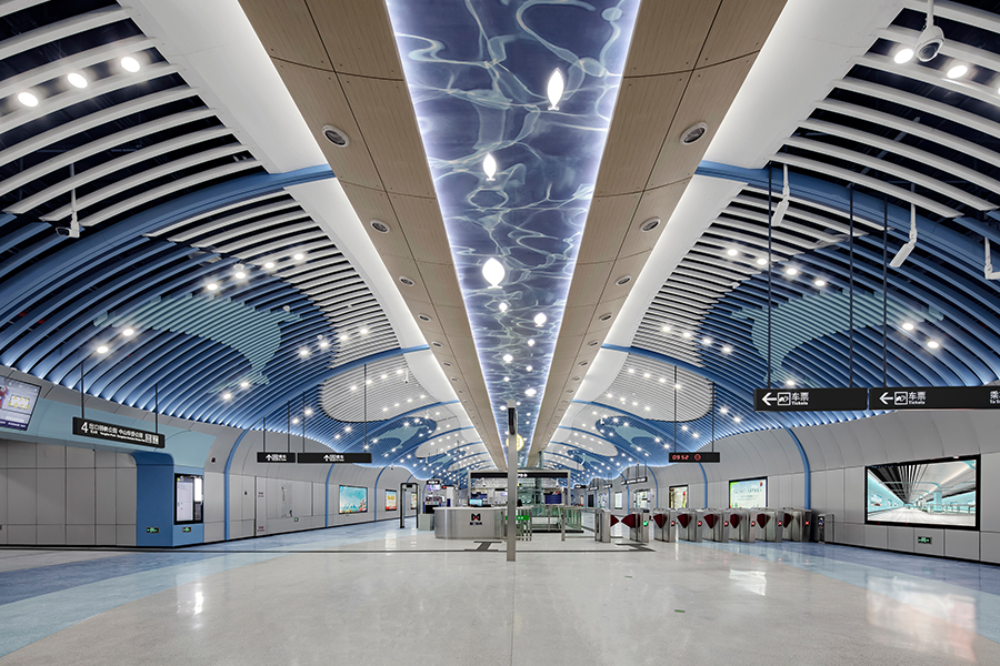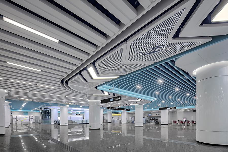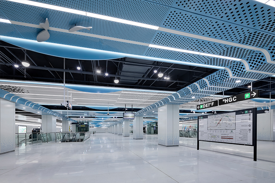 深圳市城市軌道交通8號線一期工程,線路長約12.8km,共設有6座車站。始于梧桐山南站,終點設于鹽田路站,是深圳首條旅游觀光路線亦是一條看海線,J&A以“山海如畫,筑夢遠航”為概念主題,借助"船"為載體,遨游于8號線的各景點之間。全線以展現各站點周邊特色藝術文化形式,通過色彩與藝術點綴空間,突顯深圳旅游特色的線路特征。一路看海,一路驚喜。