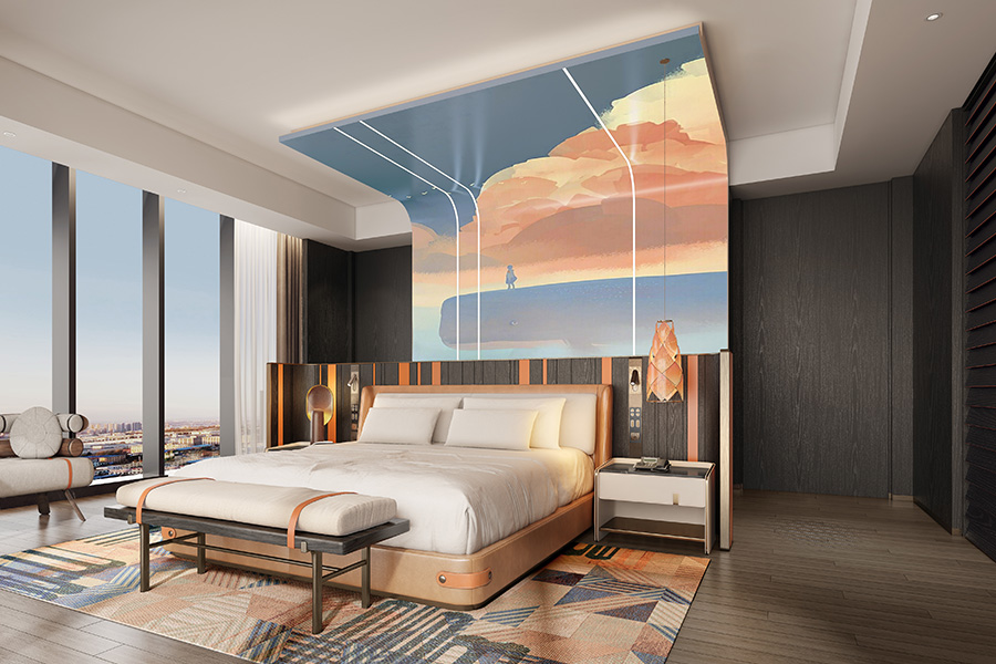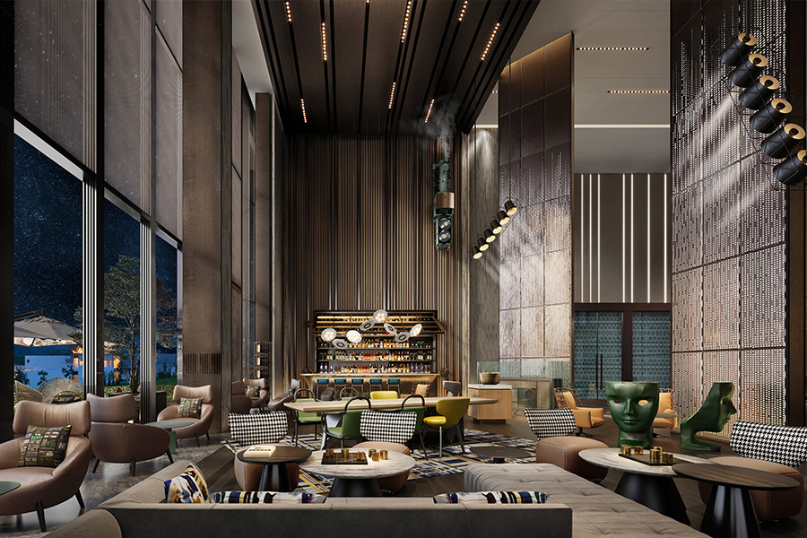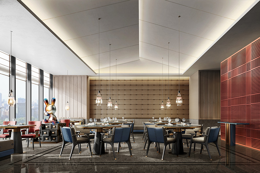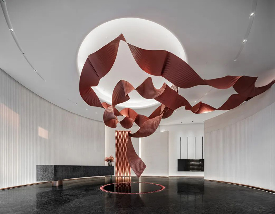 項目位于鳳凰東四路與鳳彩路交叉口,總設計面積約1500㎡。立足項目整體定位,融合地域人文特色,J&A在設計中以“百鳥朝鳳”為設計脈絡進行延展,將現代生活美學與傳統文化相結合,力圖打造一個充滿藝術氣息、文化底蘊、多元化的藝術空間。