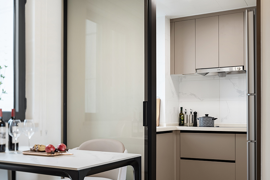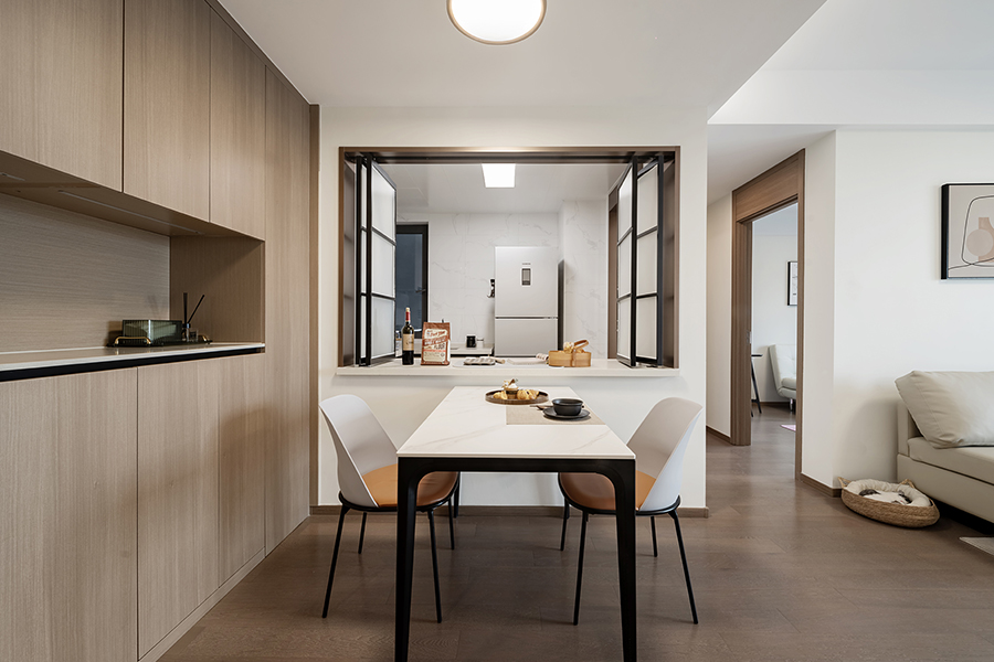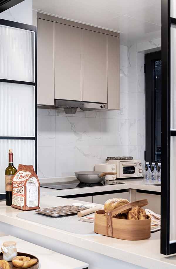 多元化的戶型空間,滿足不同的使用需求。空間材質(zhì)上總體采用棉麻布藝、絲絨、皮革、石材、金屬,增加層次感,營造精致而舒適的居家氛圍。廚房延續(xù)老上海風(fēng)格打造翻窗隔斷設(shè)計(jì),滿足烹飪與會(huì)客多重模式切換。