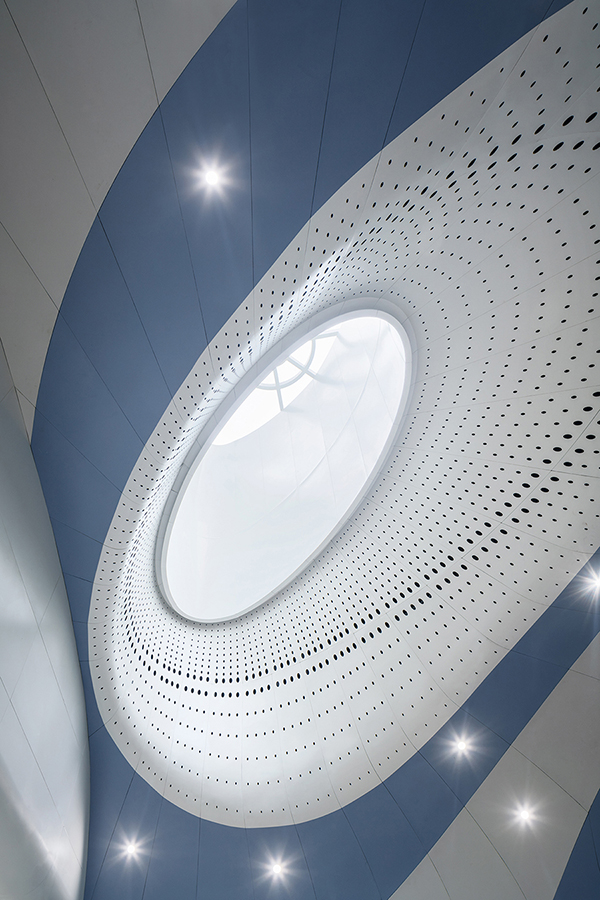 在空間視覺上結合建筑特色,以流線的形式虛實結合釋放了天窗區域,提升空間視覺感受與品質。