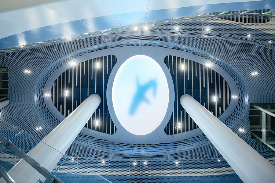 車站通過天地墻一體化渲染海洋藝術氛圍,陽光與海面的交相呼應,讓自然的流線美學融入整體設計中。