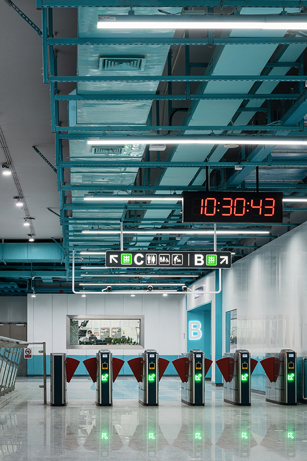 利用管線造型和沉浸式色彩營造出獨特的感官體驗。不僅強調了鹽田區的旅游文化特色,還在延續深圳地鐵一貫簡約風格的基礎上,通過虛實相結合、繽紛色彩的運用,打造出一個悠然自由、愜意舒適的“山海航線”,讓人仿佛步入一座充滿藝術氣息的展覽館。