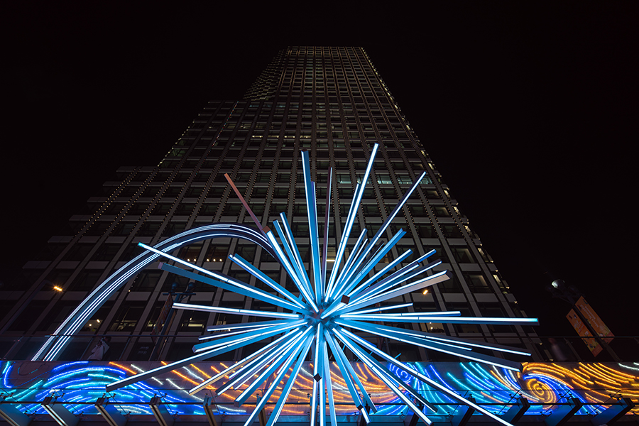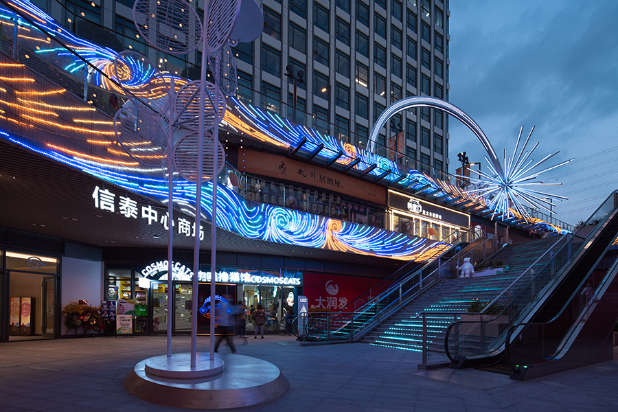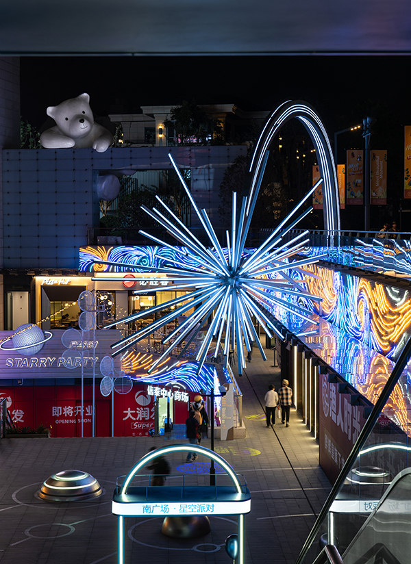 流星裝置在路面層起到很好的昭示性,讓空間有強烈的視覺亮點。