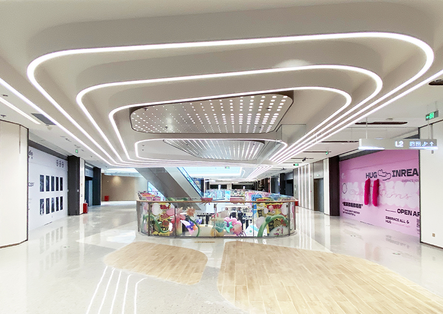 J&A杰恩設計充分調研項目定位與使用人群分析,結合當下年輕世代人群的消費空間喜好,以“萬物活力生長的根基——種子”作為設計符號,抽絲剝繭出不同的設計亮點融入空間,將建筑及景觀的韻律感和生態感延伸融合到室內,空間中流動的線條語言寓意著自由和包容,如植物生長般的自然動線在商場的每一個角落律動,打造城市新青年娛樂、文化、社交等多樣需求的群聚空間,一個充滿活力的MIX新生活城市綜合體由此誕生。