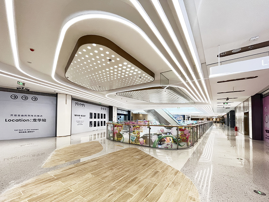 對于商業空間來說,明確的導向不僅提升顧客體驗,還可能刺激消費。J&A的導向標識設計團隊系統延續空間設計理念,為龍華印象匯打造專屬的標識系統。在標識功能上注重規劃布點的科學性、信息設計的辨識性、運營維護的便利性;在形式美學上運用燈光塑造標識的層次感和科技感,讓標識更加藝術、時尚、現代,使形式與功能完美結合,給人更好的尋路體驗。