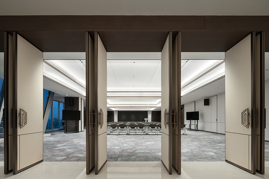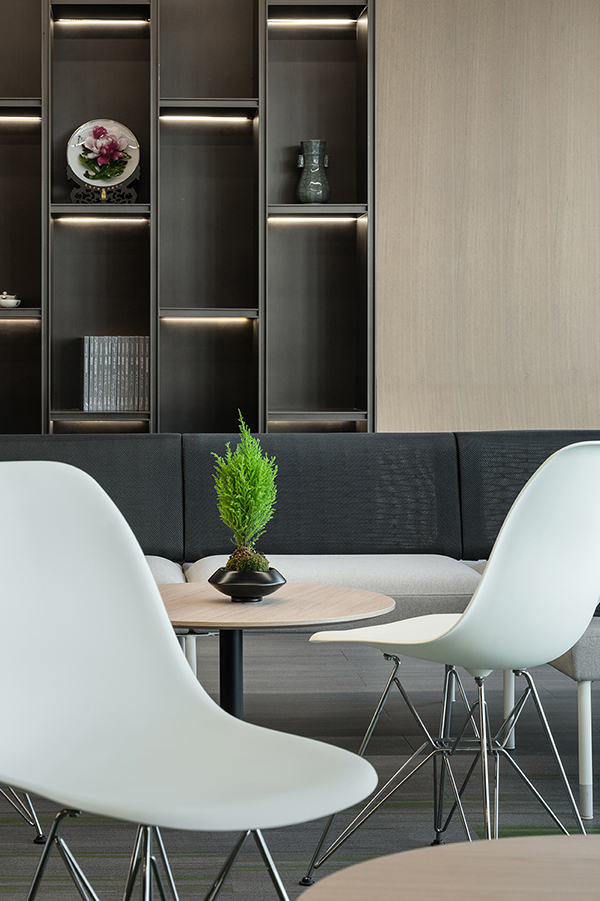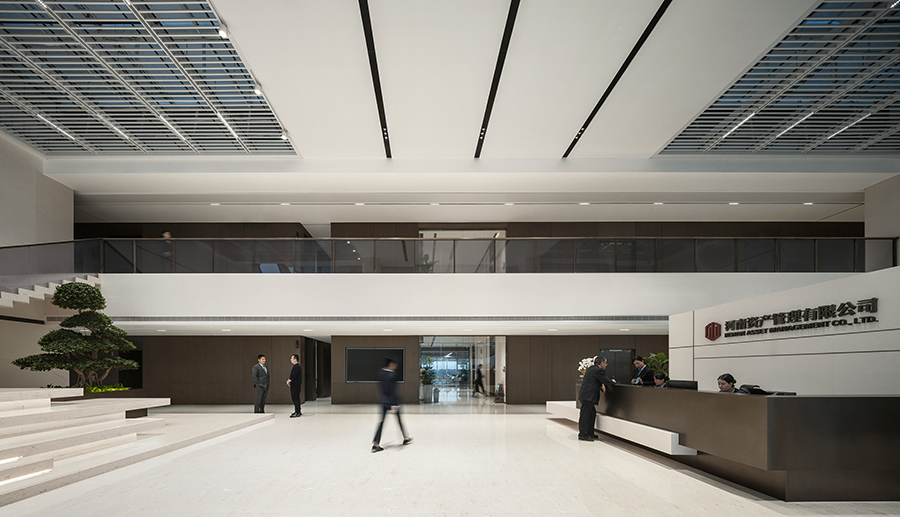 為強調河南資產總部的專屬性,設計團隊把企業標識轉換為設計元素應用在屏風上,將企業獨特的基因滲透到室內空間的各個角落。