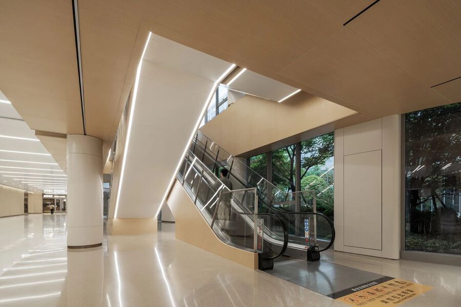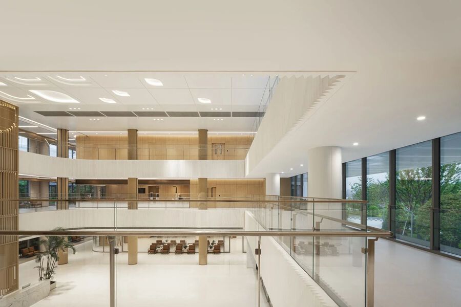 大堂內(nèi)部利用自然光、生態(tài)材料以及與樹葉相關(guān)的色彩和形狀,營造出一種溫馨而舒適的氛圍。