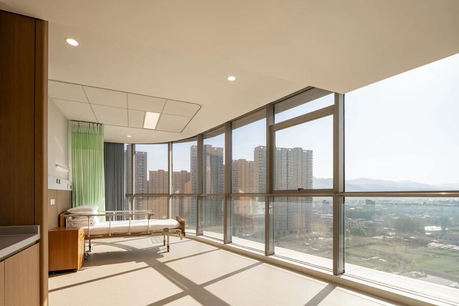 住院區(qū)域不僅需要能提供一個功能性強、效率高的醫(yī)療服務(wù)環(huán)境,還要通過自然元素的融入,為病人和醫(yī)護人員創(chuàng)造出一個舒適、療愈的空間,病人的身心恢復(fù)以及醫(yī)護人員的身心健康。
