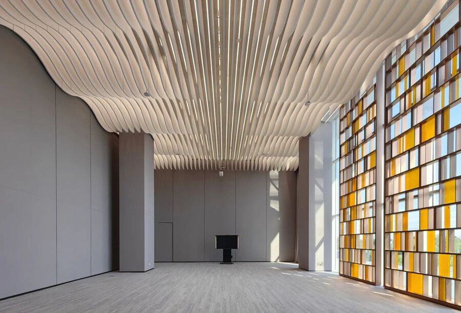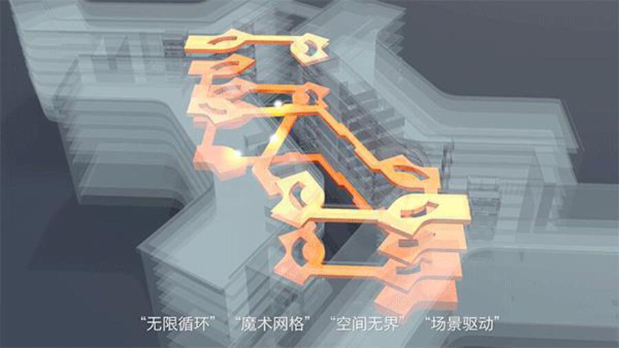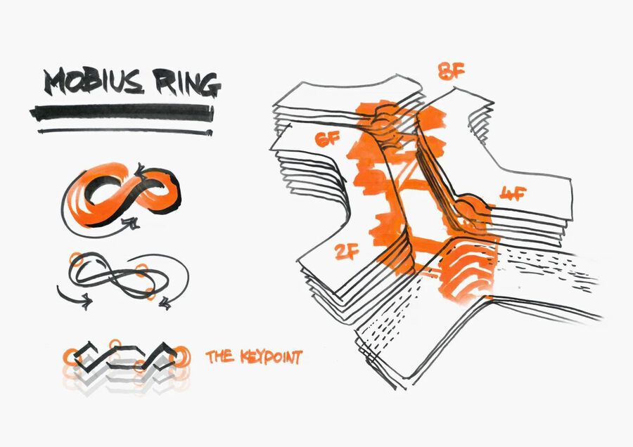 結合互聯網作為現代世界互聯互通的基石精神,設計團隊從莫比烏斯環中汲取靈感,運用莫比烏斯環的空間形態打造無限循環連廊,如同高峽通衢串聯起建筑體塊。