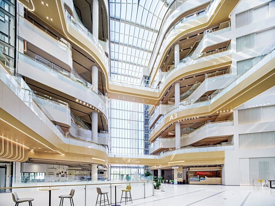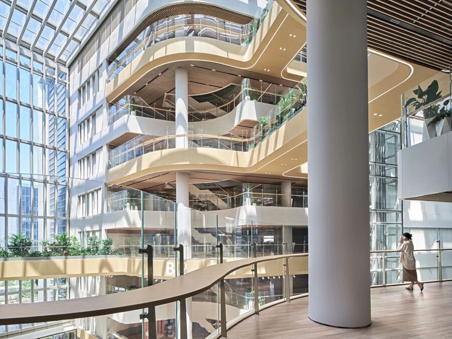 不但高效連通各層辦公區域及休閑協作空間動線,同時也增加了空間形態的多樣性和物理位置上的靈活性。