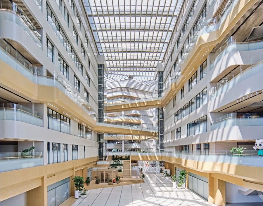 「三組建筑群的矩陣式聯動、三個形態各異的八層高中庭,以及阿里巴巴業主的滿滿期待,J&A設計團隊的壓力與挑戰不言而喻。」