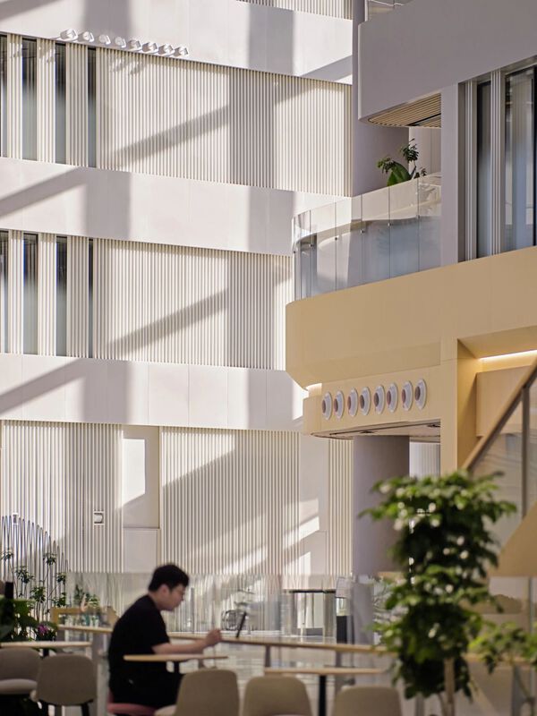 設計團隊在與甲方深度溝通后,希望能找尋到一種連通各建筑體塊、中和空曠感、可多場景復用的中庭設計解決方案,并賦予其新的功能和意義。