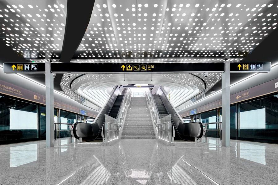 作為長三角一體化基礎設施互聯互通的一項示范工程,蘇州軌道交通11號線線路全長41.27km,共設置28座車站,是蘇州首條市域軌道交通線路,也是首條與上海軌道交通線網對接的線路,其建成運營對推動滬蘇同城化發展等有著重要的示范意義。從站城視角出發,J&A在項目室內設計中,充分運用空間一體化設計原理,注重簡約性、功能性、便民性、延續性、藝術性、創新性,呈現人文生態、舒適便捷、智能科技的地鐵空間。