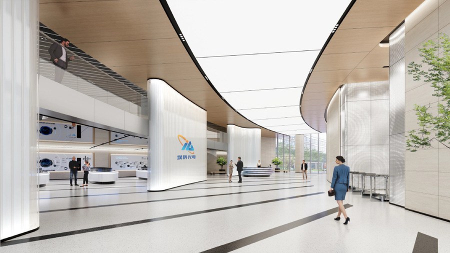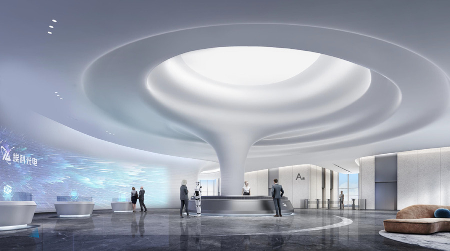 J&A杰恩設計充分理解埃科光電的企業(yè)精神和發(fā)展愿景,以“埃米極鏡”為主題構(gòu)思三層空間(接待區(qū)、辦公區(qū)、配套區(qū))的設計概念,旨在打造一個埃科獨屬、多維高效、活力永續(xù)的新型產(chǎn)業(yè)園區(qū)。