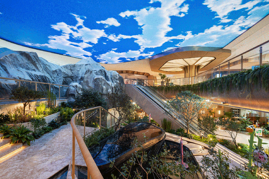 延續“城市自然共同體”的理念,成都光環購物公園充分融入“雪山下的公園城市”在地樣貌,在近20000㎡的垂直空間里,呈現出「云里」「山里」「光里」三大特色空間,打造一個療愈系都市棲息地。