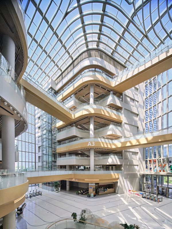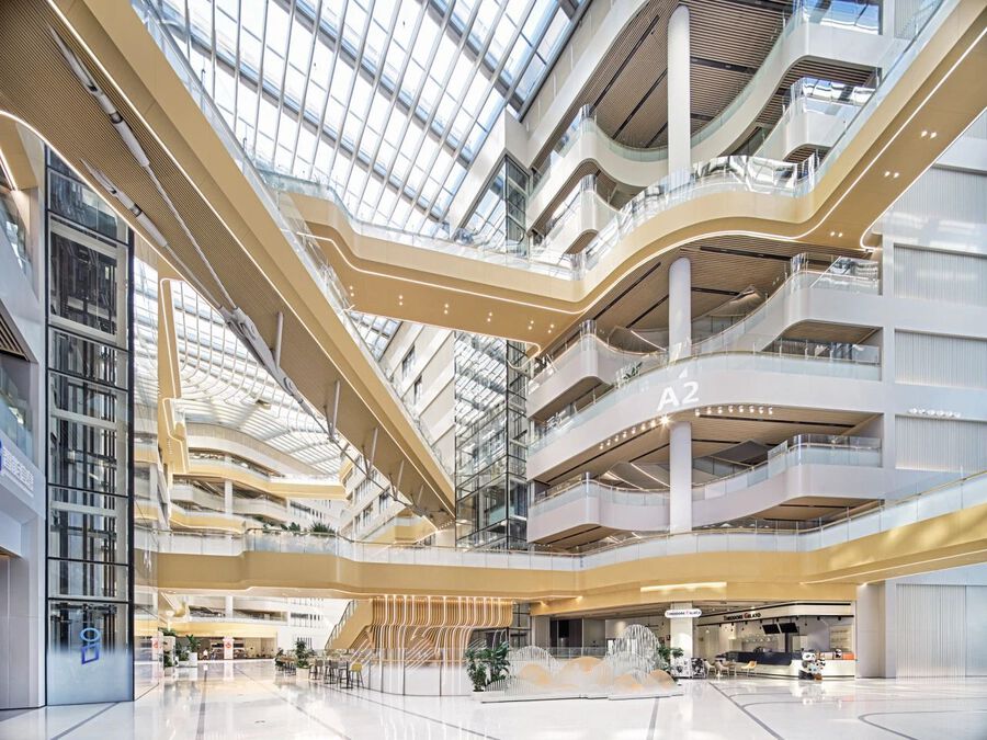 設計團隊將匯聚與循環、科技與綠色轉換為設計語言,用三維空間詮釋出互聯網頭部企業“連接萬物”的愿景,為數萬阿里巴巴人創造了一座科技與人文完美融合的理想園區,成為互聯網/科技企業的園區設計創新典范。
