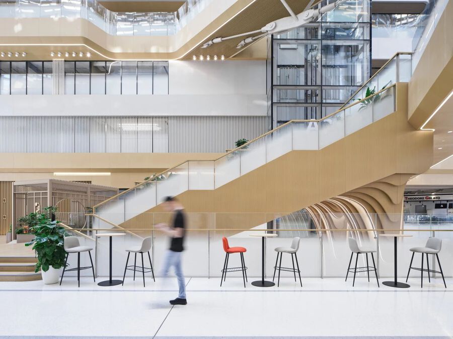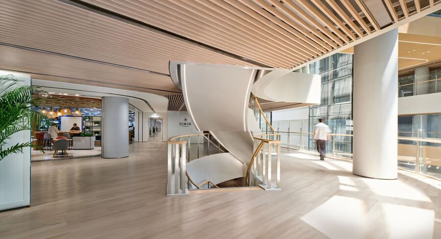 J&A杰恩設計以“自·然·界”概念的宏觀命題作為設計主題,辦公中庭分主題概念高峽通衢運用莫比烏斯環的空間形態打造無限循環連廊,為阿里巴巴打造出一座集政務接待、國際會晤、創新研發、休閑娛樂為一體的超大復合型辦公總部。