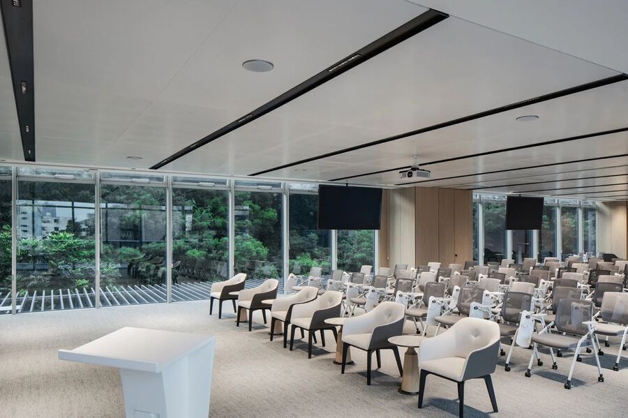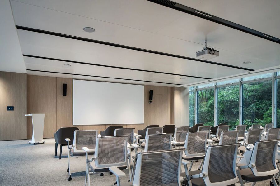 會議室裝備了尖端的智能會議系統,致力于實現無紙化辦公,從而營造一個綠色、健康且可持續的工作空間。