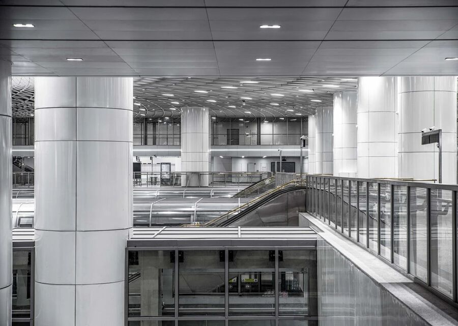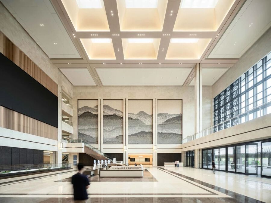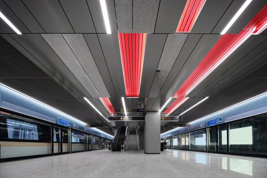 設計團隊以空間一體化與模數化設計手法,將公共區裝修、導向標識、公共藝術品、商業廣告與機電及弱電系統完美結合,各專業之間相互關聯、相互配合,將現代與傳統融合,展現城市的氣質與情懷。