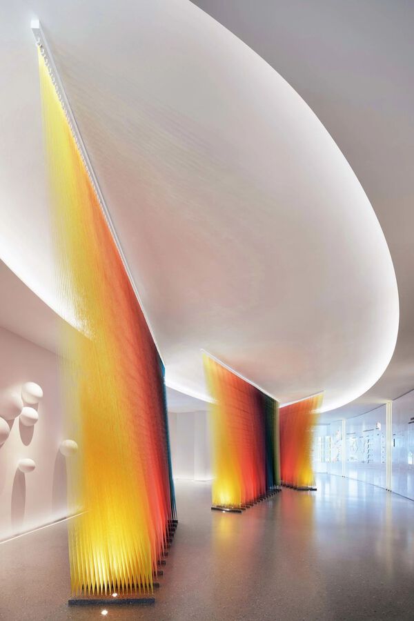 設計團隊選取了帶有“鯨”,“云”,“舟”元素的藝術裝置,作為空間故事線索,誕生出出其不意的美好藝術,完整的詮釋出漫步云端亦是觀云舒霞卷的境遇。