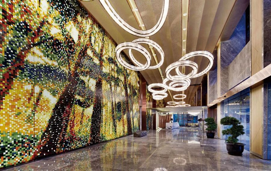 大堂空間的設計中,設計團隊運用貝殼馬賽克和淺灰色地面,營造出墻面的柔和色彩,賦予空間溫馨與舒適之感。窗邊特別增設中式屏風,為來賓提供了一種仿佛置身于黃浦江畔的錯覺,波光粼粼的江面似乎觸手可及。J&A以合科學合理的布局,創造出一個既實用又富有藝術氣息的理想空間。