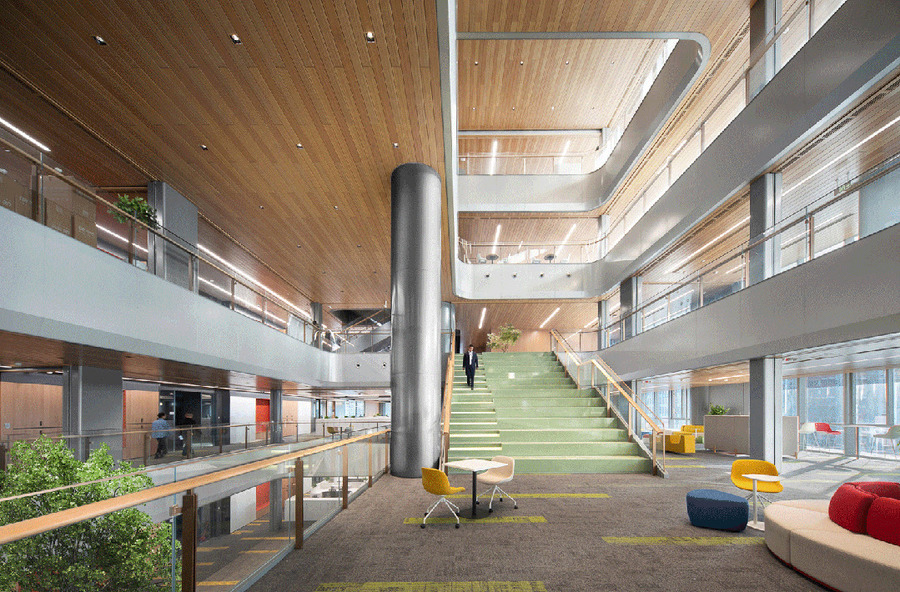 微眾銀行總部大廈項目位于深圳前海,總建筑面積15.3萬㎡,作為中國首家互聯網銀行和民營銀行總部,J&A憑借在金融和科技互聯網企業辦公領域的豐富經驗,提出“垂直森林中的金融新界”的設計理念,為其打造靈活高效、健康環保、智能科技的綠色生態辦公環境。
