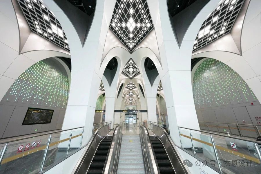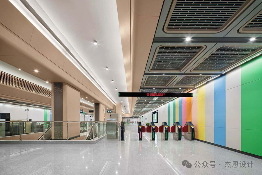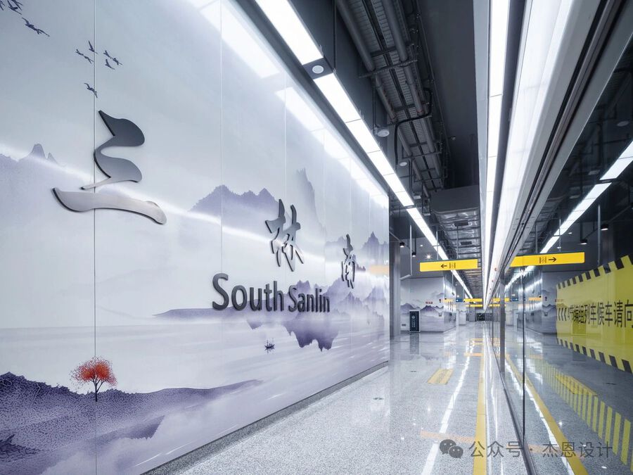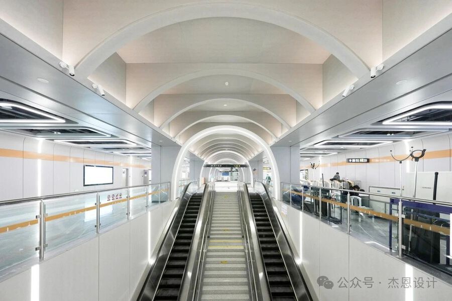 上海市域機場線是國內首條與國鐵網絡互通互聯的市域鐵路示范工程。J&A在中春路站的設計中,提出“水韻石橋”的概念提取石拱橋的形態以及河流的動態元素,應用到建筑及室內造型之中。三林南站以“入林”為設計核心通過漸變的生態色塊作為背景,實現城市與自然的視覺鏈接,使乘客置身于一個綠色空間中。