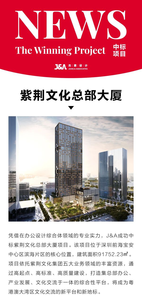 紫荊文化集團有限公司是一家綜合性大型骨干文化央企,是目前僅有的兩家副部級文化央企之一。項目依托紫荊文化集團五大業務領域的豐富資源,通過高起點、高標準、高質量建設,打造集總部辦公、產業發展、文化交流于一體的綜合性平臺,將成為粵港澳大灣區文化交流的新平臺和新地標。