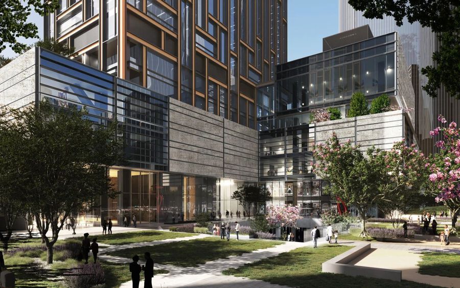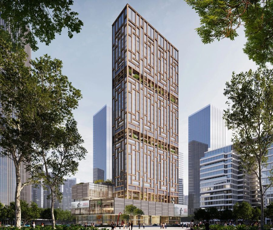 紫荊文化總部大廈位于深圳前海寶安中心區濱海片區的核心位置,建筑面積91752.23㎡。超高層塔樓為辦公業態,4-5層裙房為商業業態。