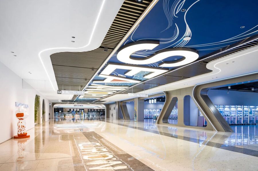 J&A杰恩設計充分調研項目定位與使用人群分析,利用區位稀缺性與臨港濱水景觀優勢,以“海洋奇旅”為設計主題,將海洋的形態與意象延伸進室內,調動視聽感受,融合業態場景,全方位打造沉浸式“海洋”主題商業空間。