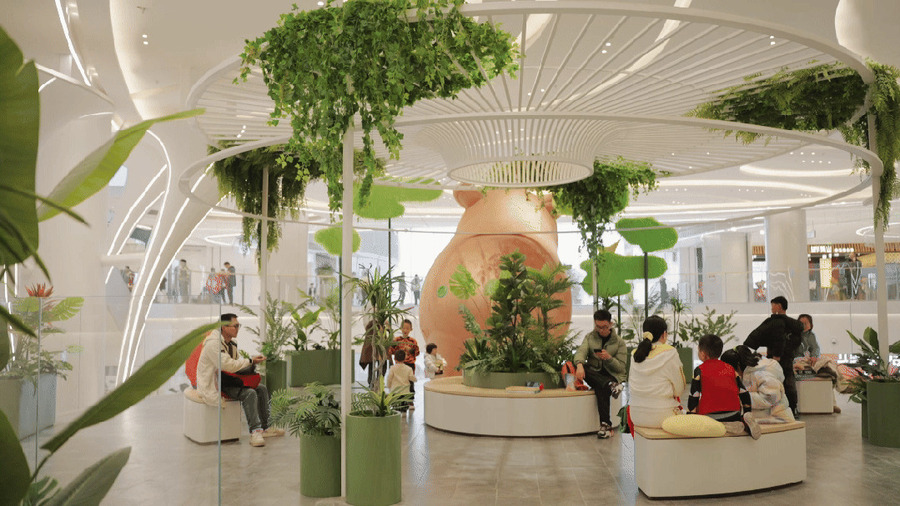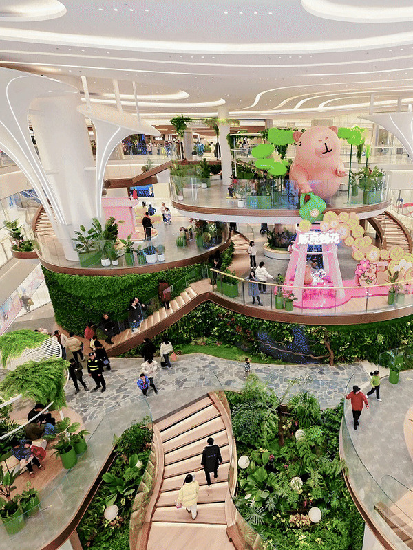 這片蔥郁的浮島花園宛如一座生機勃勃的溫室,顧客踏入的瞬間便被自然的氣息所包圍,沉浸在清新氧吧般的游逛環境里。
