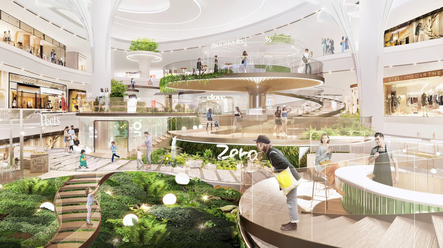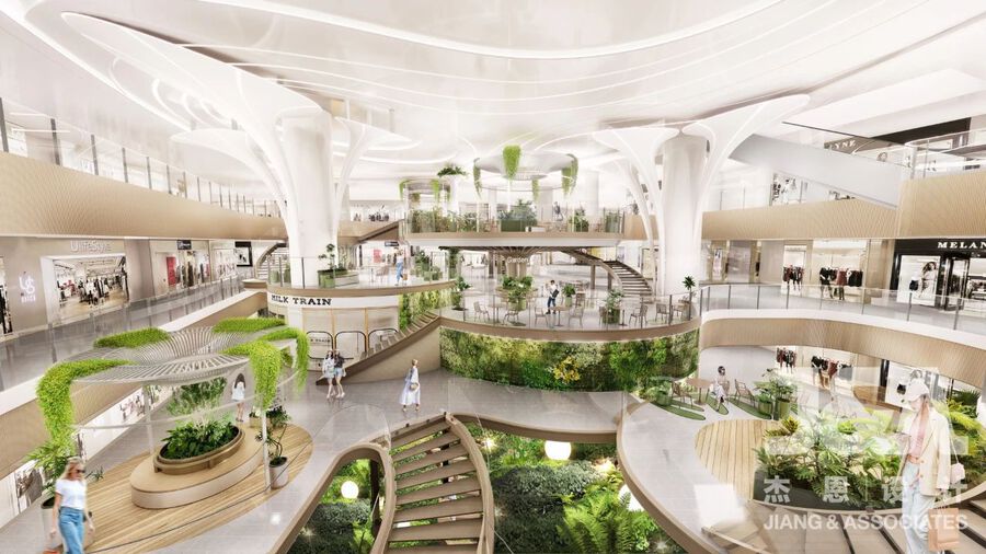 以商業景觀為媒介,構建起階梯式的綠色生態社交場所,讓顧客在購物的同時,也能享受自然與人文交融的獨特體驗。