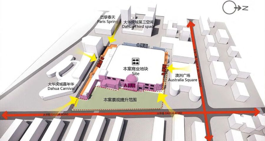 大華虎城中心地處上海北中環大華商圈核心位置,總建筑面積約5.5萬平方米,項目3公里輻射常住人口超百萬,區域人口密集,居民生活消費需求旺盛。J&A杰恩設計受邀本項目商業平面更新布局、建筑外立面、前廣場景觀、室內精裝、燈光、標識、軟裝一體化的工作。