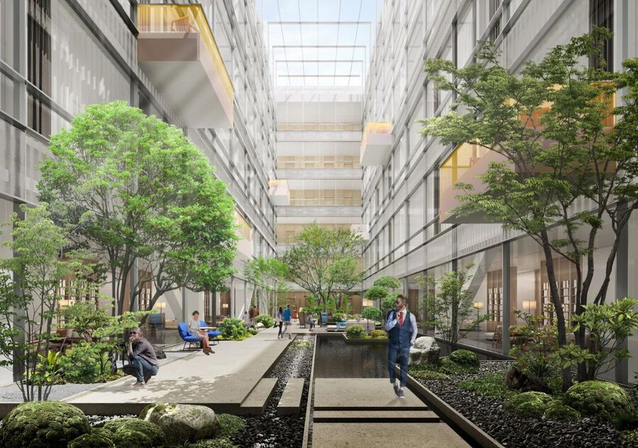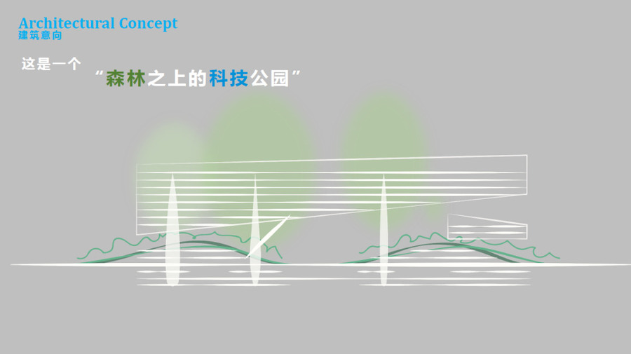 以「創造一個面向未來的高質量辦公環境和公共空間,一個森林之上的科技公園」為設計愿景,項目融合「立體森林、健康運動、立體交通系統、共享空間」4大主題,通過實現人與自然、科技與自然、科技與生活的交互和融合,打造一個綠色、智能、人文的園區。