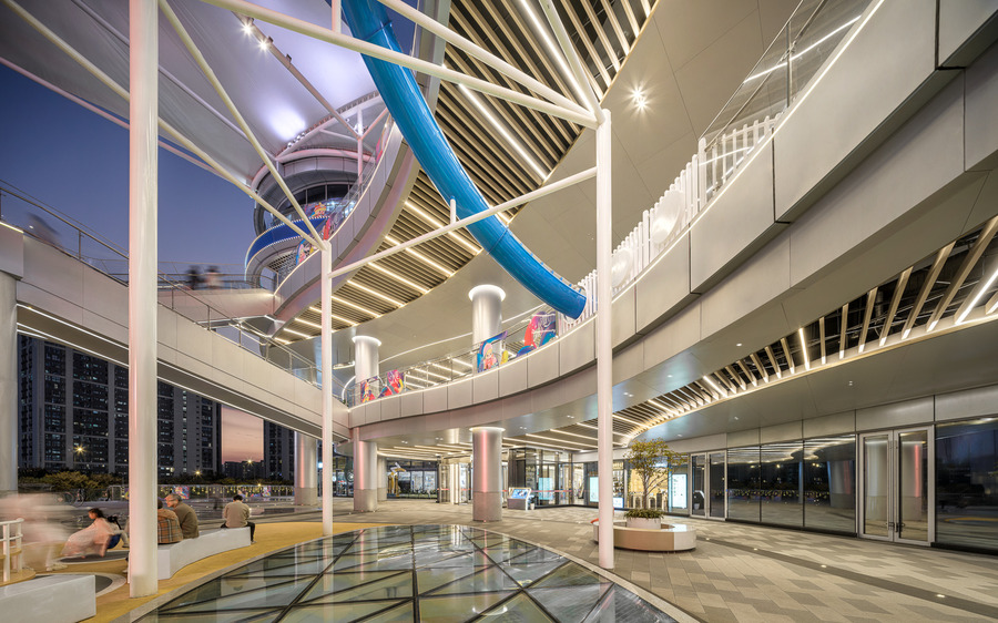 夜間通過燈光的洗光效果,配合模塊化可移動景觀,構建出親子家庭的核心引力場。