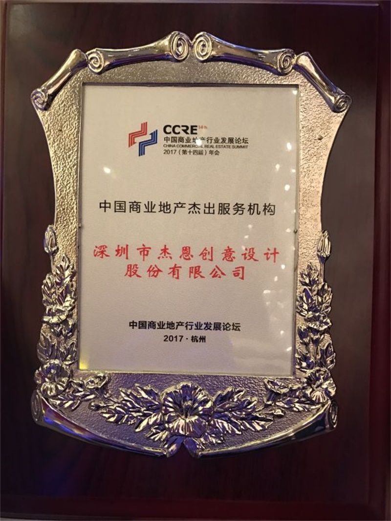 J&A作為理事單位出席本屆盛會,憑著近20年的商業空間設計經驗和眾多頂級商業設計項目實踐,繼2015年獲得“中國商業地產杰出設計機構”獎后,再度受到中國商業地產行業發展論壇的表彰,一舉斬獲2017“中國商業地產杰出服務機構”獎。